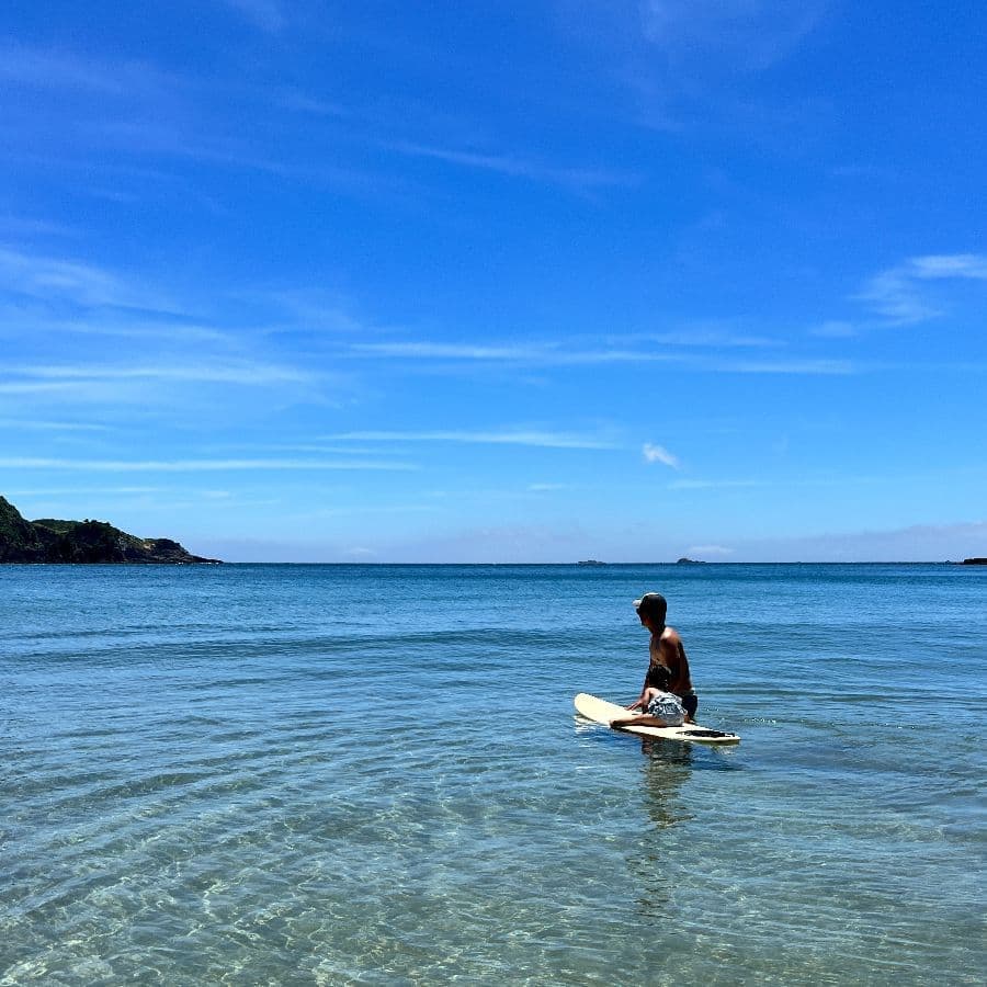 ソラより徒歩5分の弓ヶ浜は湾状の地形のため他の海水浴場と比べ比較的波も穏やかでお子様との海遊びに最適です。また台風などのうねりが入ればサーフィンも可能で比較的空いているため初心者の方も他を気にせず楽しめます。